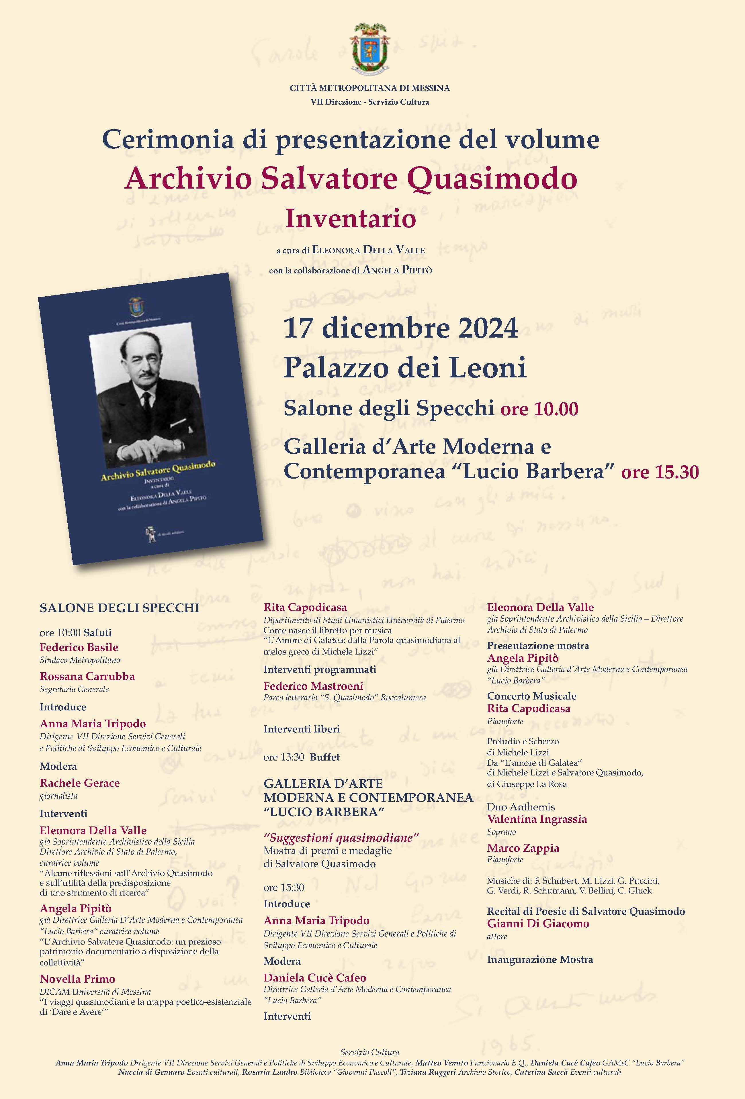 Si tratta di una mostra di fotografie, manoscritti, lettere, onorificenze provenienti dall’Archivio del poeta, acquisito nel maggio 2000 dalla Provincia Regionale di Messina. Essa intende mettere in evidenza gli svariati interessi artistici e culturali del grande poeta.